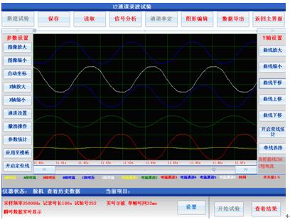 1.試驗數據采集。在“等待試驗"狀態或“查看數據"狀態,點擊儀器軟件右下角的開始試驗按鈕,儀器開始數據采集。當儀器處于試驗數據采集狀態時,儀器實時展示各通道實際采集的數據和圖形。